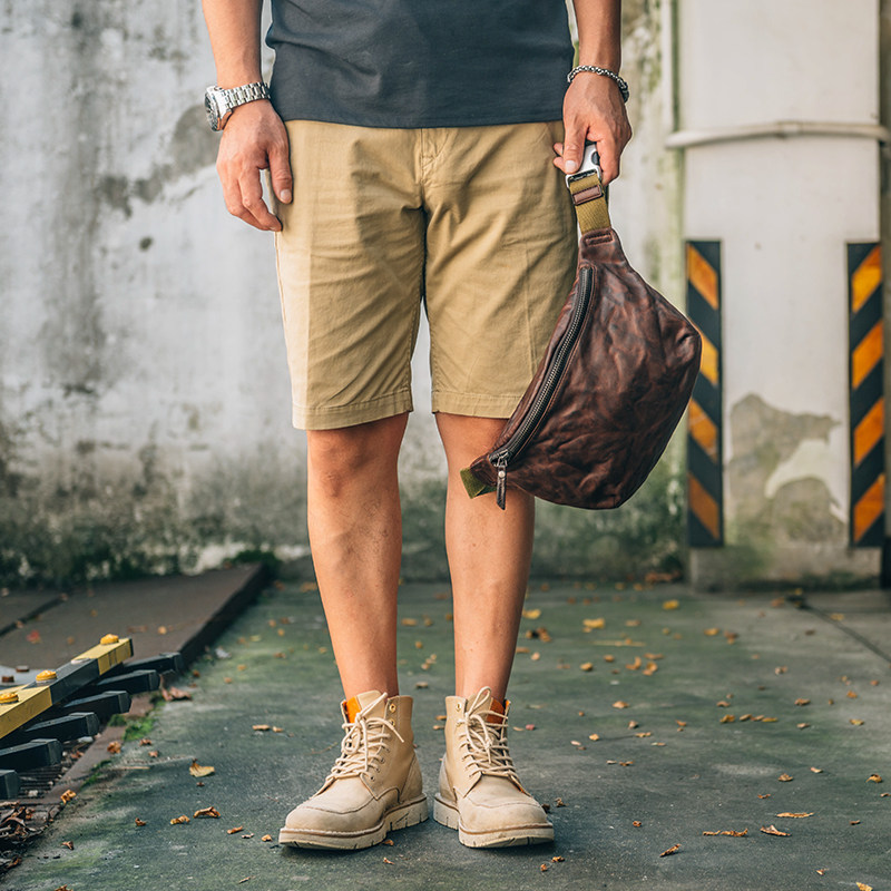 淘宝头层牛皮腰包手工复古真皮背包斜挎包阿美咔叽潮流休闲胸包男