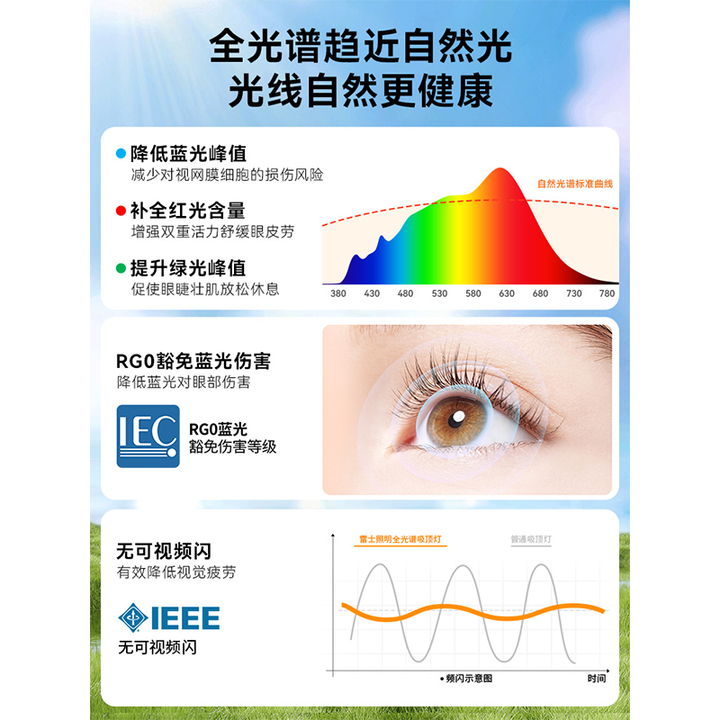 雷士照明小白灯普瑞全光谱护眼吸顶灯客厅主灯卧室灯智能全屋灯具