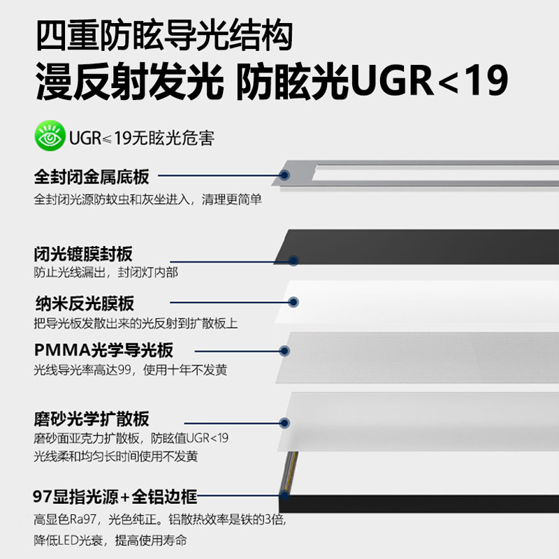 美国普瑞超薄护眼LED长条吸顶灯,专为客厅、书房、书桌等空间打造,采用全光谱光源技术,高度还原自然光,有效减少蓝光危害,呵护双眼健康。灯体超薄设计,简约现代,轻松融入多种装修风格。长方形结构提供均匀柔和照明,无频闪、无眩光,长时间学习工作更舒适。高显色指数(Ra≥95)真实呈现物体色彩,提升阅读与办公效率。节能环保,寿命长达50000小时,安装便捷,适用于家庭、办公室等多种场景,是追求健康光环境的理想选择。