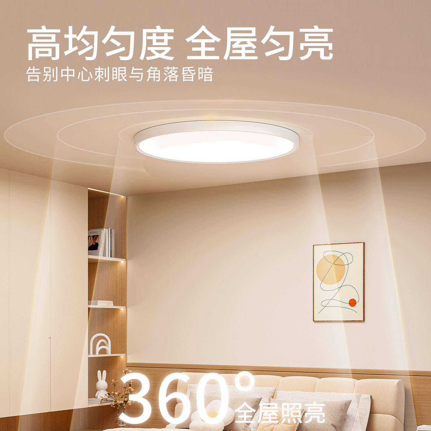 大满贯超薄儿童房护眼吸顶灯——天沐系列,专为儿童学习与生活空间设计。采用全光谱LED光源,高度还原自然光,有效缓解视觉疲劳,守护孩子视力健康。超薄机身搭配漫反射光学设计,光线柔和均匀,无频闪、无眩光,营造舒适照明环境。智能调光调色功能,支持冷暖光自由切换,适配阅读、休息等多种场景。高显色指数(Ra≥95),真实呈现色彩,提升学习专注力。适用于书房、卧室、儿童房等空间,兼顾美观与实用,是家长为孩子打造健康光环境的理想之选。