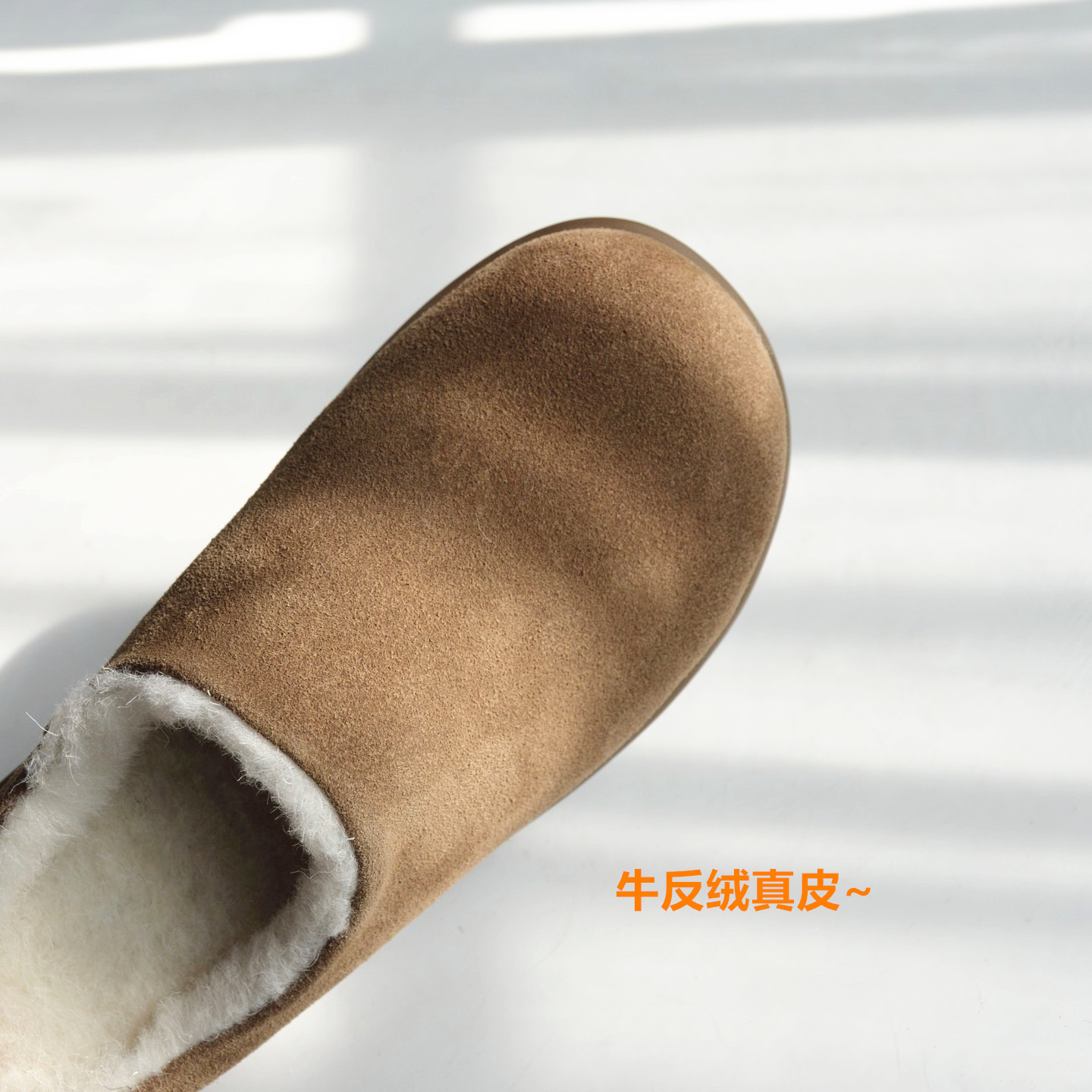 淘宝羊毛小土豆~ 牛反绒勃肯鞋2025冬季新款毛毛鞋包头一脚蹬女棉拖鞋