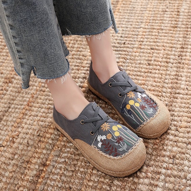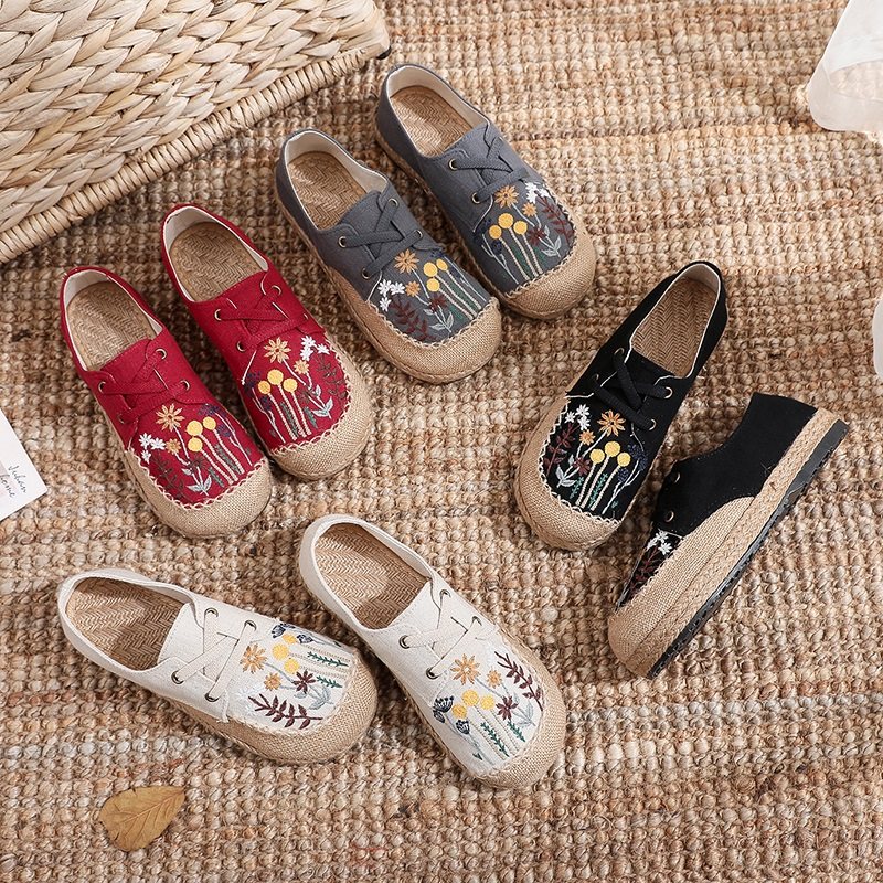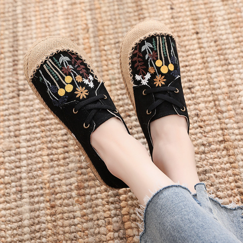 淘宝老北京布鞋女鞋春季新款民族风绣花鞋系带防滑透气平底懒人大头鞋