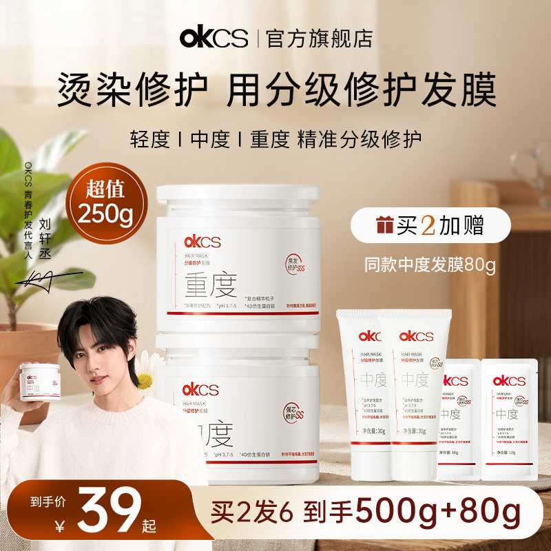 天猫OKCS分级修护发膜护发素女柔顺顺滑补水改善染烫损伤毛躁干枯正品