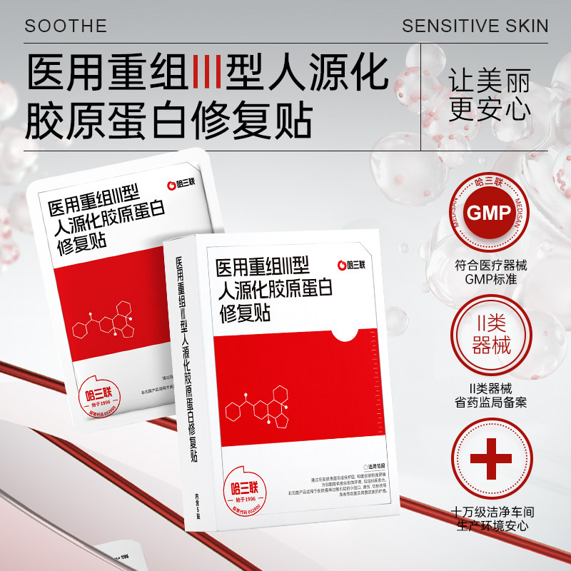 哈三联医用重组III型人源化胶原蛋白修复贴白膜创面敷料是一款专为皮肤屏障修复设计的医疗器械产品,非日常护肤面膜。其主要成分为重组III型人源化胶原蛋白,具有高生物相容性和活性,能有效促进创面愈合、修复受损皮肤组织,适用于激光术后、微创治疗、轻度烧伤及慢性创面等医疗场景。该产品采用医用级材料,无菌生产,贴合性强,可在创面形成保护屏障,减少感染风险,加速组织再生。需在医生指导下使用,确保安全有效。作为医用敷料,它注重功能性与修复效果,而非美容功效,是皮肤科及医美领域重要的辅助治疗产品。