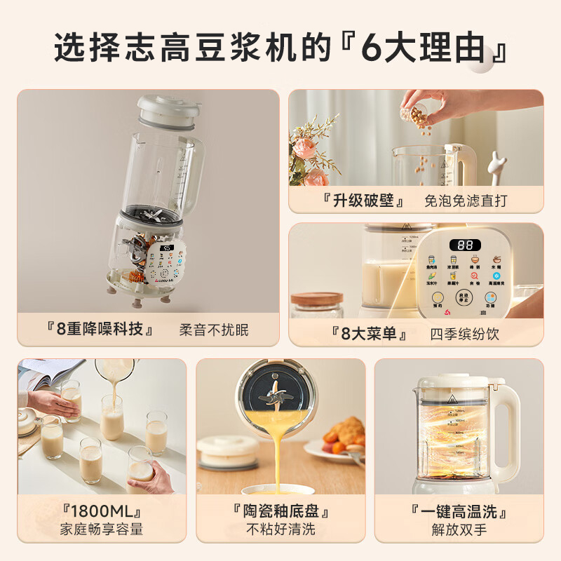 天猫破壁机志高豆浆机小型家用全自动新款1-2单人无渣免煮榨汁料理机