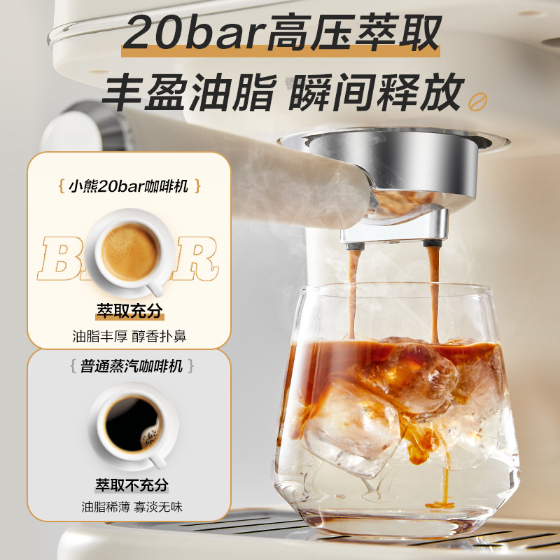 天猫[阿里自营]小熊意式咖啡机家用小型工位半自动办公室奶泡一人250