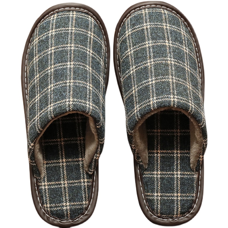 淘宝千鸟格子布艺保暖棉拖鞋男秋冬季情侣居家室内月子防滑软底女静音