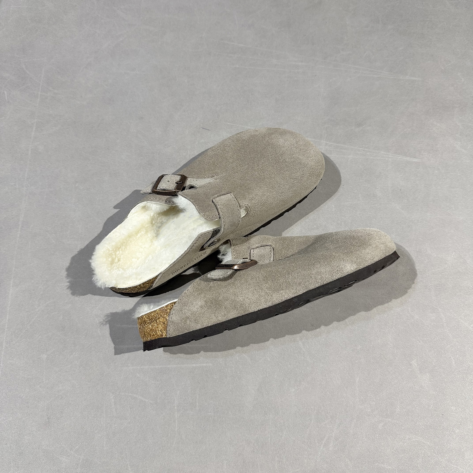 淘宝BO肯舒适温暖皮毛一体情侣款欧美半拖鞋女秋冬外穿包头穆勒拖5730