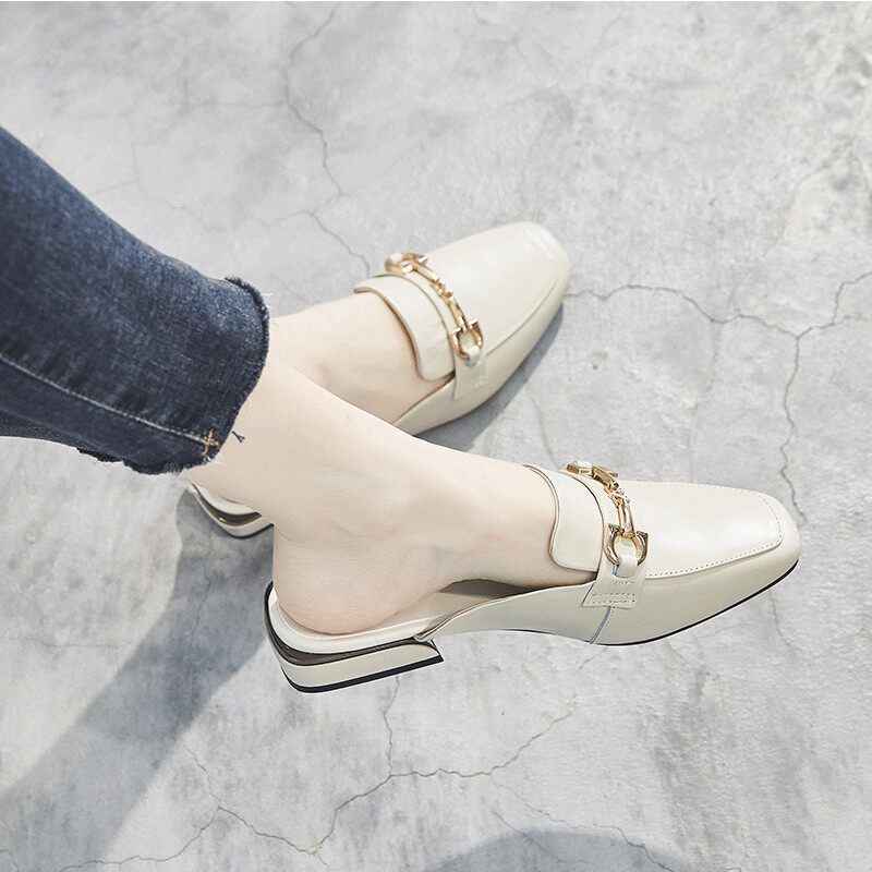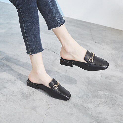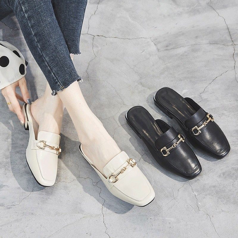 淘法式温柔半拖鞋平底鞋女包头一脚蹬软底银鞋玛丽珍女鞋气质一字拖