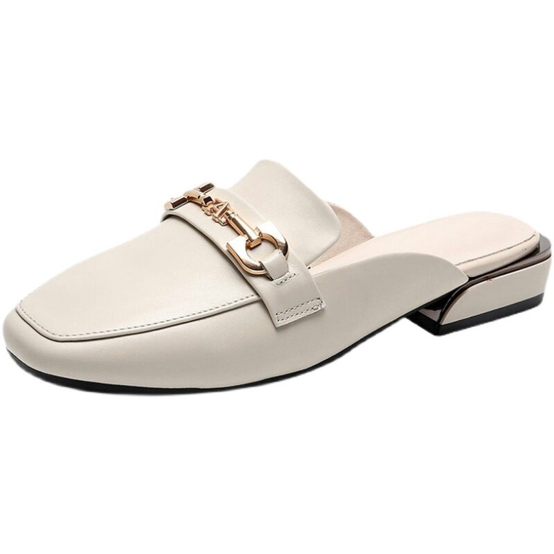淘宝断码清仓真皮包头半拖鞋女夏外穿2025新款时尚穆勒粗跟网红凉拖