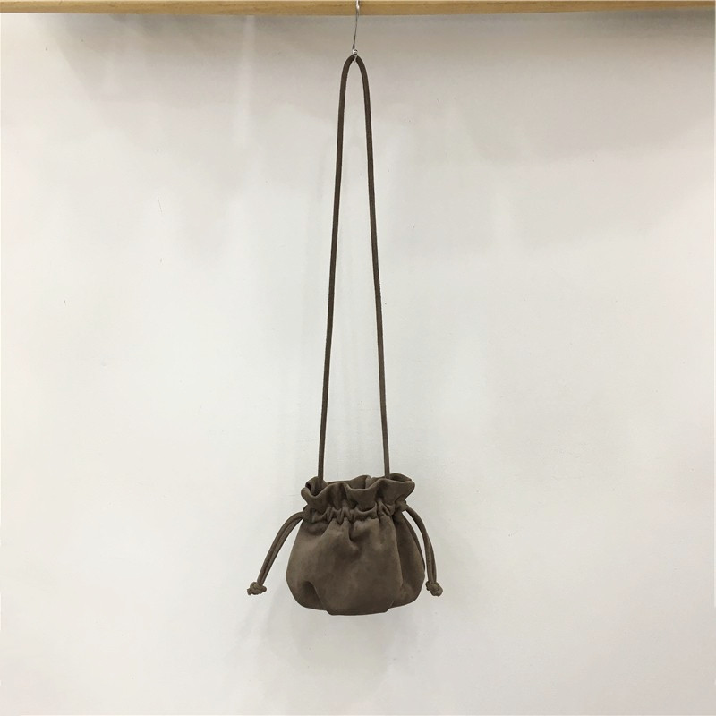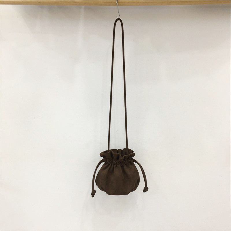 淘宝小脏柜 韩国小众ins抽绳束口水桶包可爱麂皮反绒单肩斜挎福袋小包