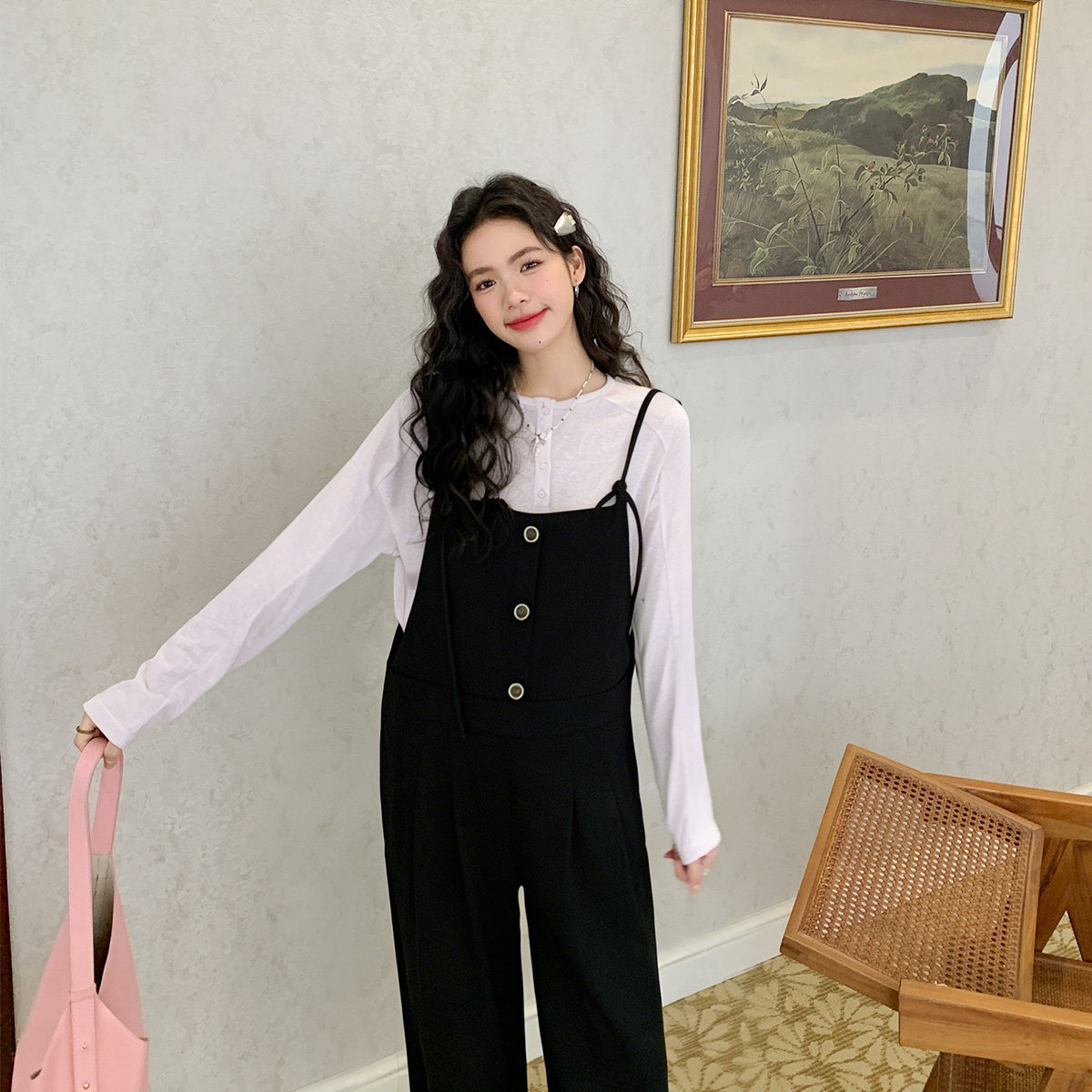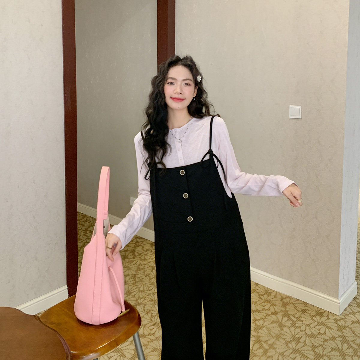 2026年春夏新款孕妇装背带裤,专为时尚孕妈设计,兼顾舒适与美感。采用轻盈透气的薄款面料,亲肤凉爽,适合炎热季节穿着。宽松阔腿版型巧妙修饰身形,包容性强,轻松应对孕期体型变化,大码设计更贴心。背带可调节,穿脱便捷,搭配简约T恤或衬衫,轻松打造洋气减龄的孕期造型。细节处融入时尚元素,如精致纽扣、撞色缝线与微褶设计,提升整体质感。无论是日常出行、居家休闲还是孕期写真,这款背带裤都能让孕妈在舒适中绽放自信光彩,做最靓丽的准妈妈。