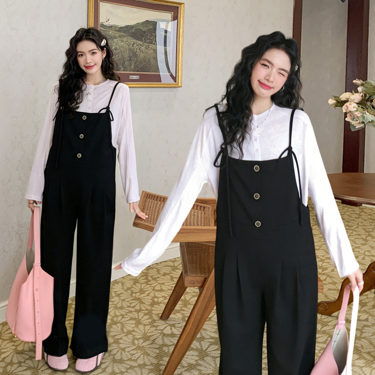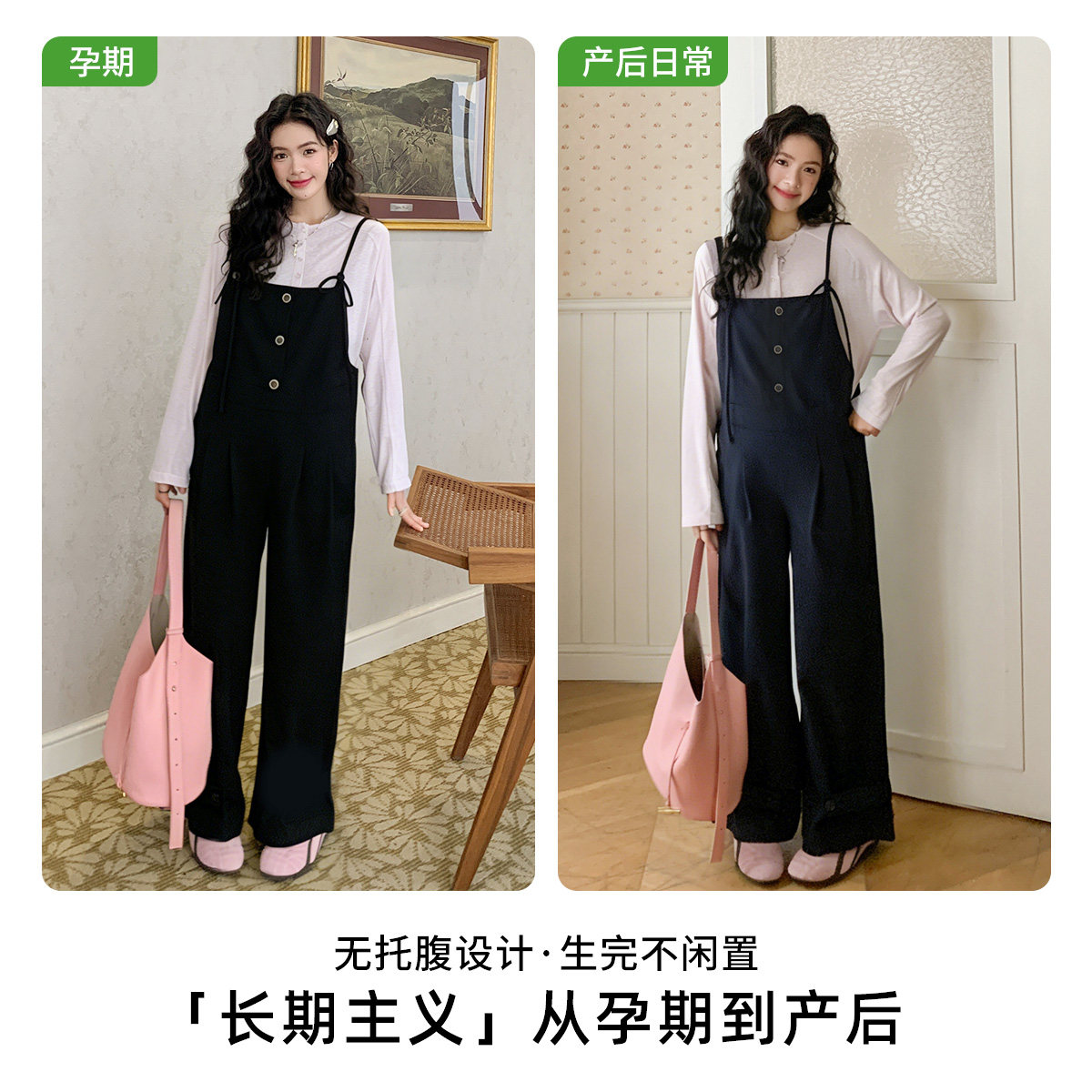 淘LeoMami孕妇裤春秋款可调节肩带背带裤设计感时尚宽松直筒裤减龄