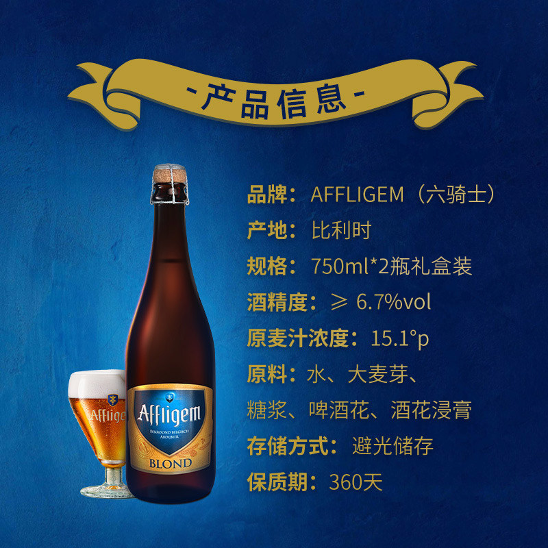 天猫Affligem(六骑士)比利时进口修道院啤酒750ml*2瓶 节日送礼