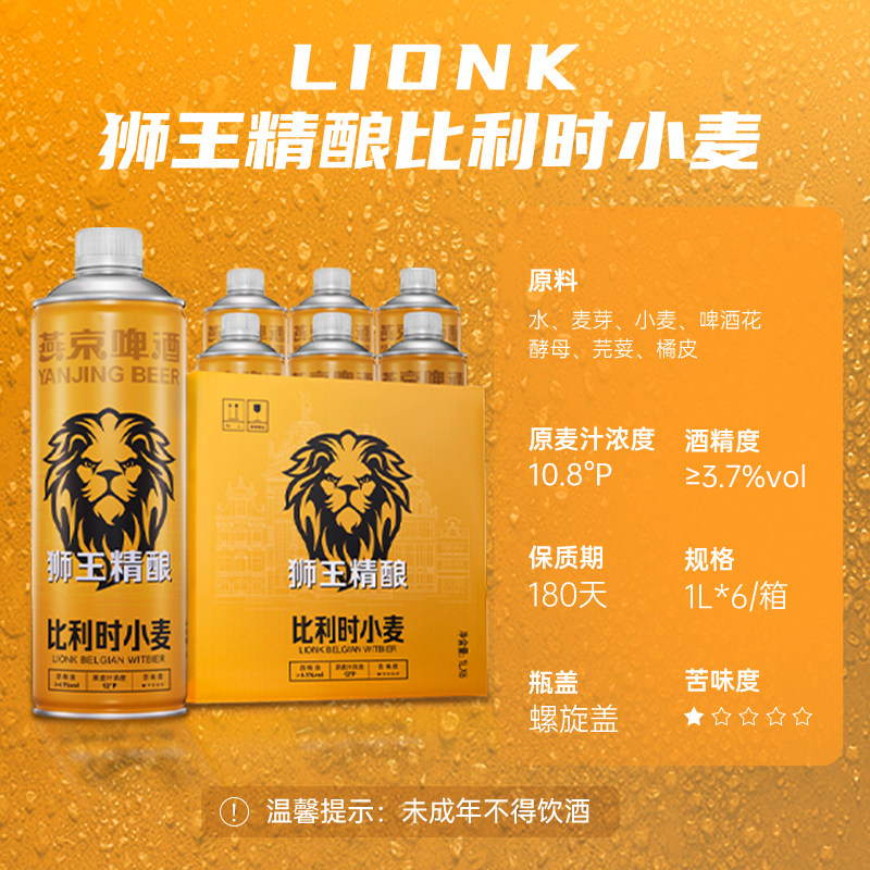 天猫燕京狮王精酿白啤10.8度比利时小麦白啤1L*6燕京官方旗舰店送礼