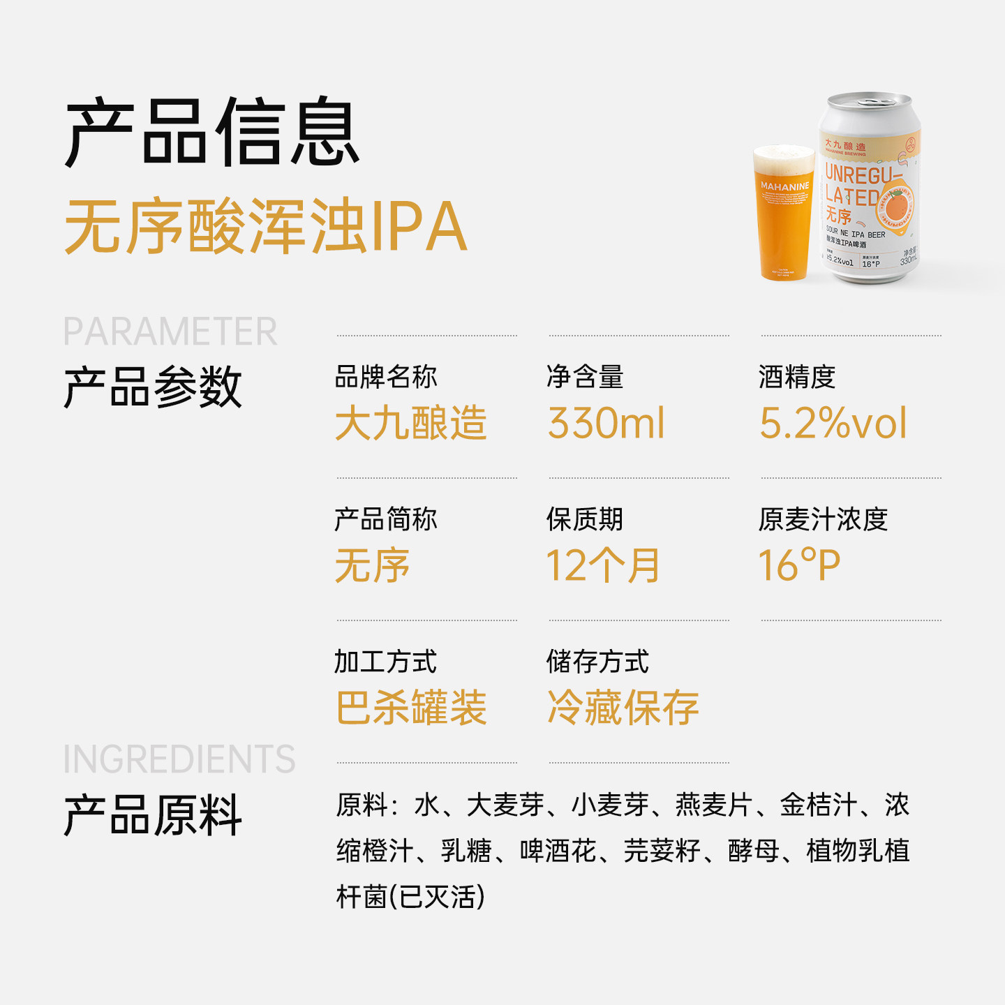 天猫大九酿造无序酸浑浊IPA工艺精酿啤酒330毫升罐装橙色果味鲜啤
