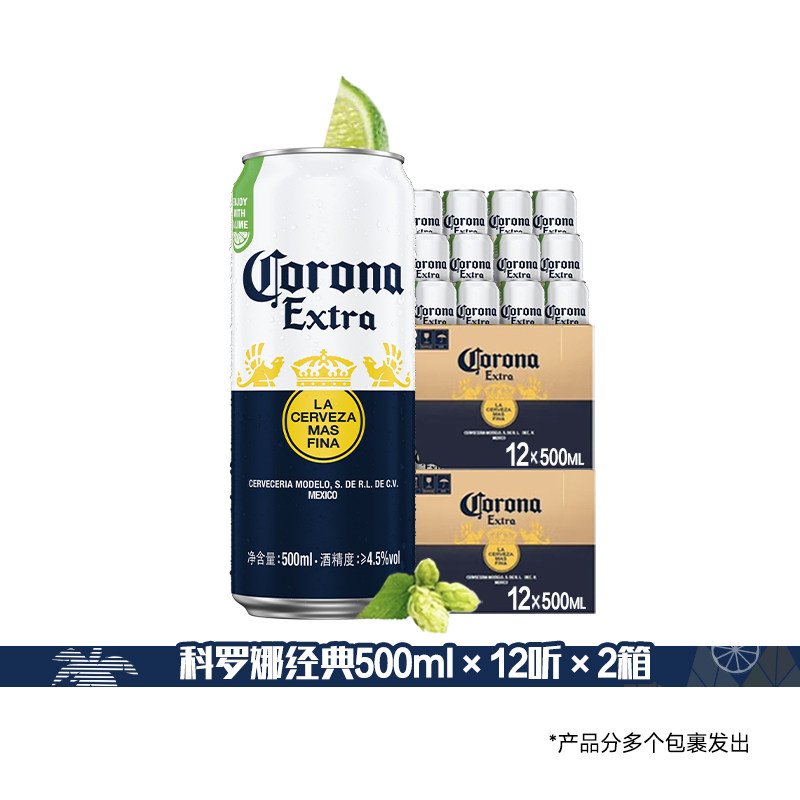 天猫CORONA/科罗娜特级啤酒500ml*24听两箱墨西哥风味11.3°P百威集团