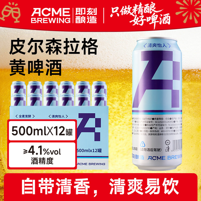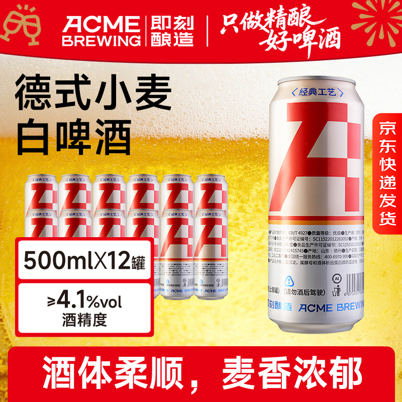 天猫即刻酿造皮尔森精酿啤酒德式小麦白啤拉格全麦精酿啤酒原浆啤酒