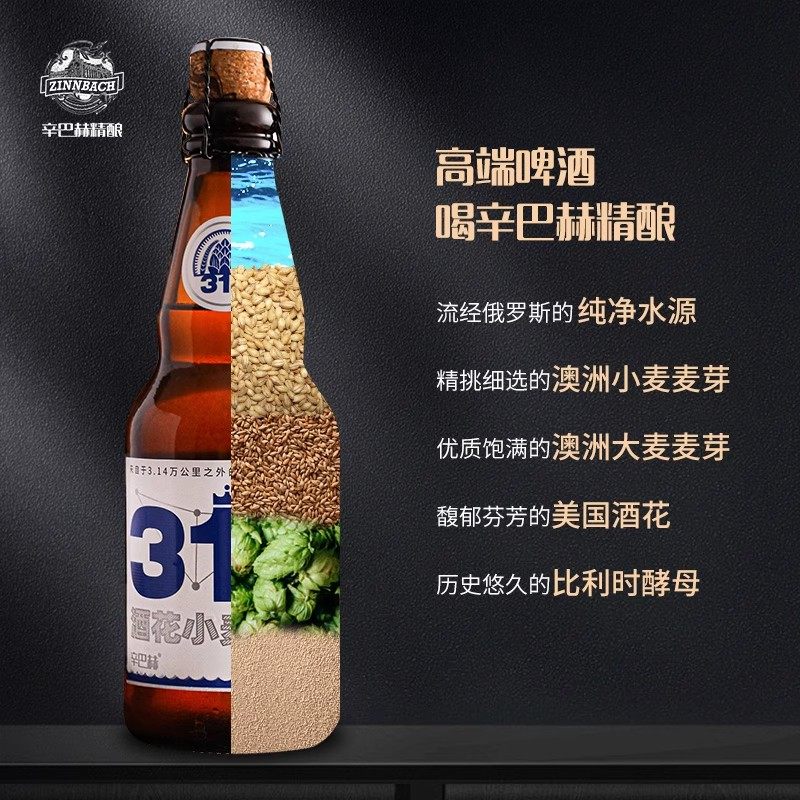 天猫辛巴赫精酿啤酒314酒花小麦高端白啤330ml*12瓶整箱官方旗舰店