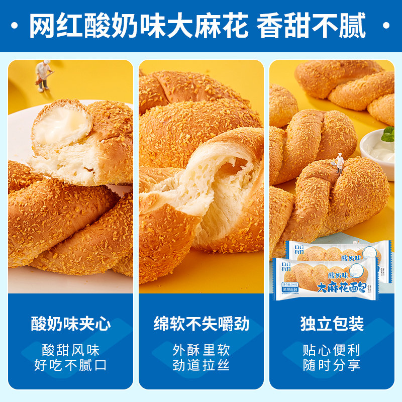 天猫爆浆酸奶味大软麻花早餐面包整箱网红充饥解馋小零食品小吃美食