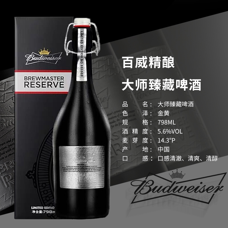 淘宝马年送礼佳品百威大师臻藏精酿啤酒798ml瓶装带礼盒精酿啤酒