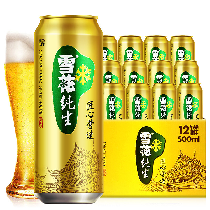 天猫雪花啤酒纯生8度500ml 12听经典拉格啤酒 纯生工艺酿造