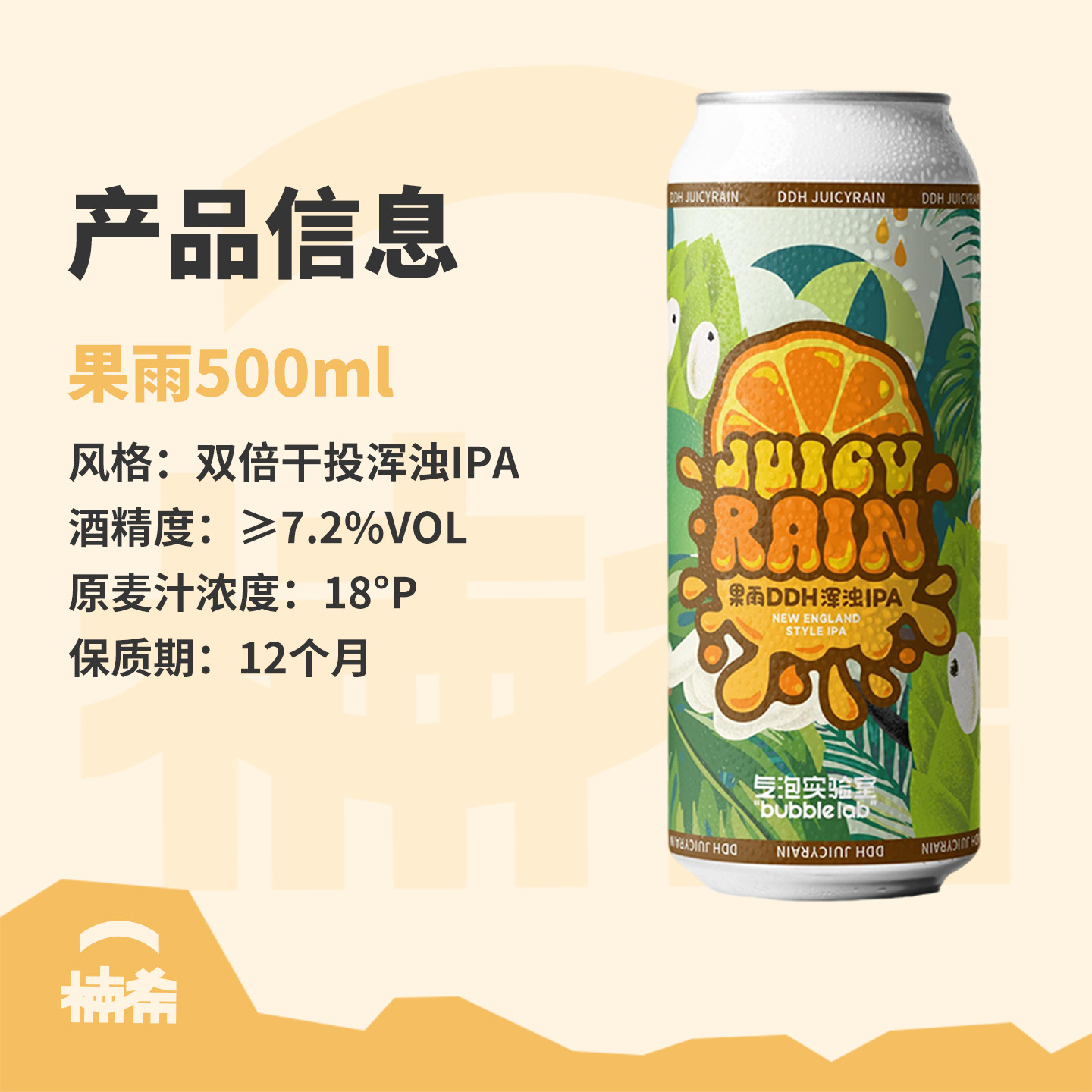 淘宝【楠希小馆】气泡实验室 果雨双倍干投浑浊IPA国产精酿啤酒500ml