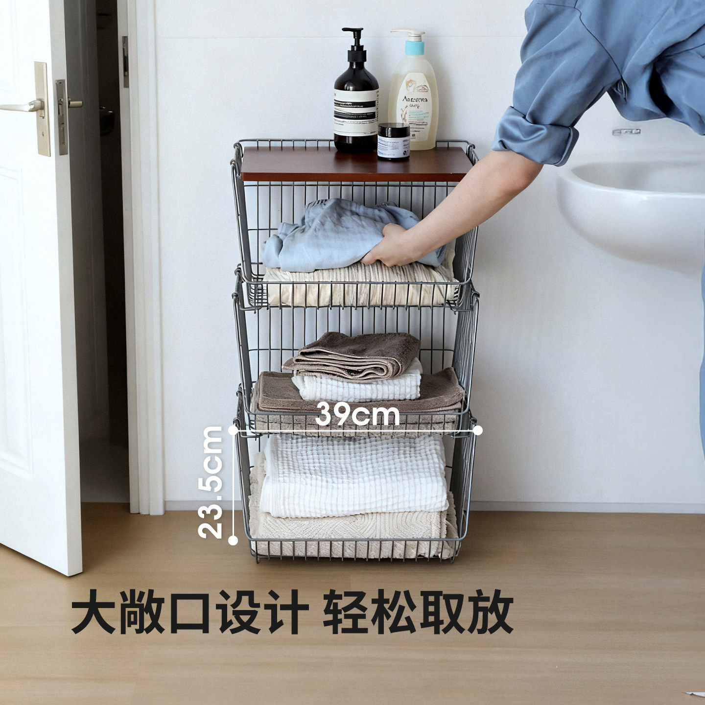 天猫霜山河马口收纳筐可叠加浴巾衣服整理多层大容量储物篮厨房收纳篮