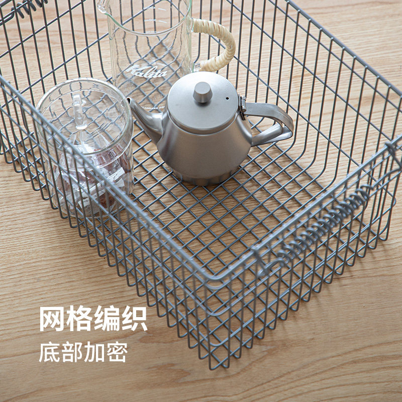天猫霜山铁艺收纳篮可叠加带提手复古杂物储物篮零食玩具工业风收纳筐
