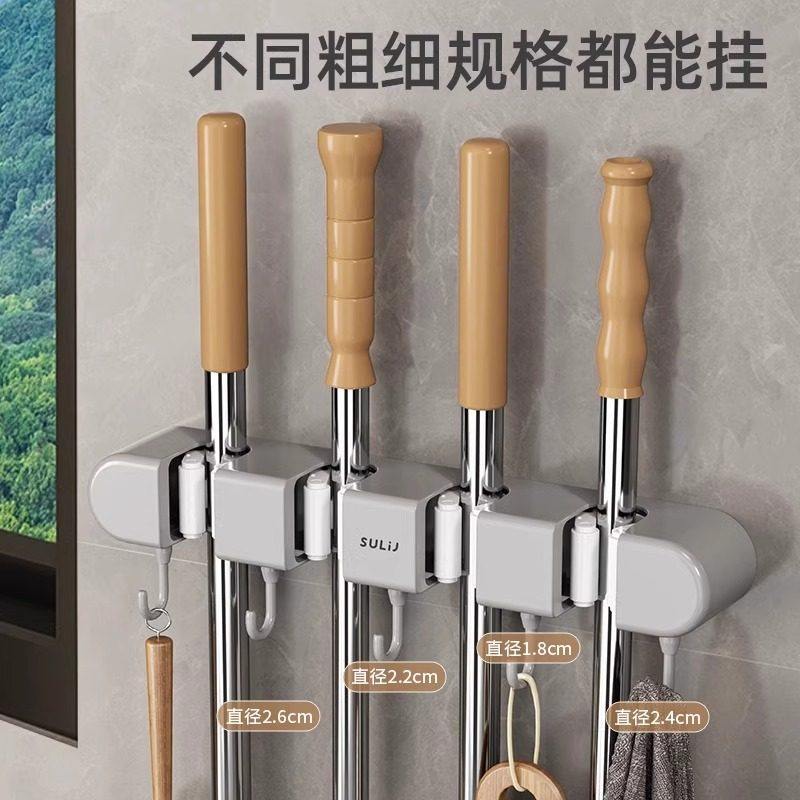 天猫家用免打孔多功能拖把架收纳架壁挂置物卡扣固定强力浴室防滑