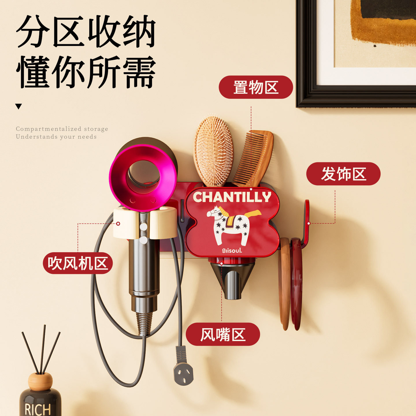 天猫吹风机置物架免打孔壁挂卫生间电吹风挂架新款浴室吹风筒收纳支架