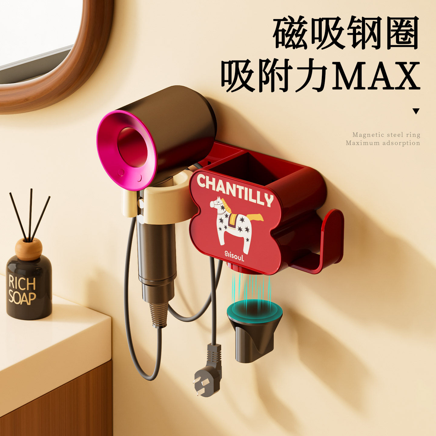 天吹风机置物架卫生间电吹风免打孔挂架浴室壁挂式风筒支架收纳神器