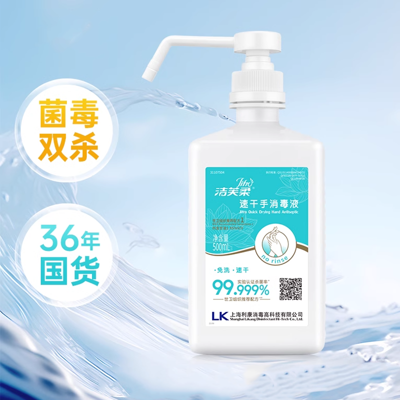 家用洁芙柔速干手消毒液是一款医护级免洗洗手液,含75%医用酒精,能有效杀灭99.9%的常见细菌与病毒,快速挥发、无需水洗,使用方便。其喷雾设计细腻均匀,适用于手部及小面积物品表面消毒,速干不黏腻,呵护双手的同时避免二次污染。产品温和配方,添加保湿成分,减少酒精对皮肤的刺激,适合全家使用,尤其适合儿童日常防护。外出、用餐前、接触公共物品后随时喷洒,为家庭健康筑起安全屏障。洁芙柔致力于提供高效、便捷、安全的消毒解决方案,是居家、办公、出行常备的卫生好帮手。