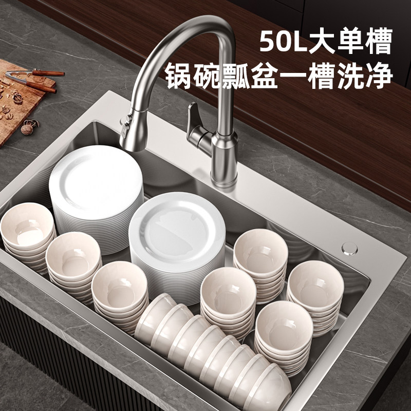 天猫洗菜盆大单槽不锈钢304厨房水槽大单槽台下盆加厚洗碗槽洗菜池