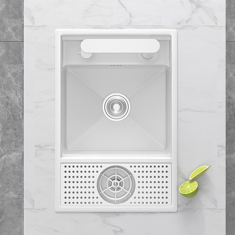 淘宝摩仕白色吧台洗杯器水槽隐形小单槽304不锈钢中岛厨房迷你洗菜盆