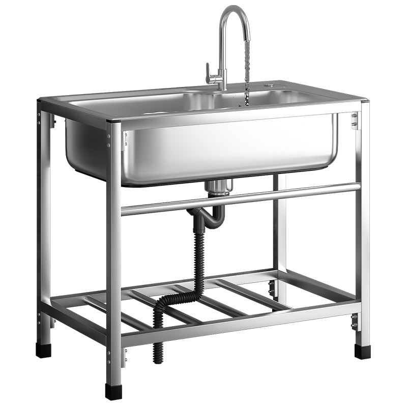 厨房J加厚简易304不锈钢水槽,采用优质304不锈钢材质,耐腐蚀、抗生锈,坚固耐用。加厚面板设计,有效降低噪音,提升使用体验。提供大单槽与双槽两种款式,满足不同厨房布局需求,空间利用更高效。配备稳固金属支架,安装简便,承重性强,长久使用不变形。槽体深度适中,有效防止水花外溅,搭配大口径排水口,排水迅速不堵塞。适用于家庭厨房洗菜、洗碗、沥水等多种用途,清洁便捷,美观实用。整体设计简约大方,易打理,是现代厨房的理想选择,兼顾品质与性价比,提升烹饪效率与生活品质。