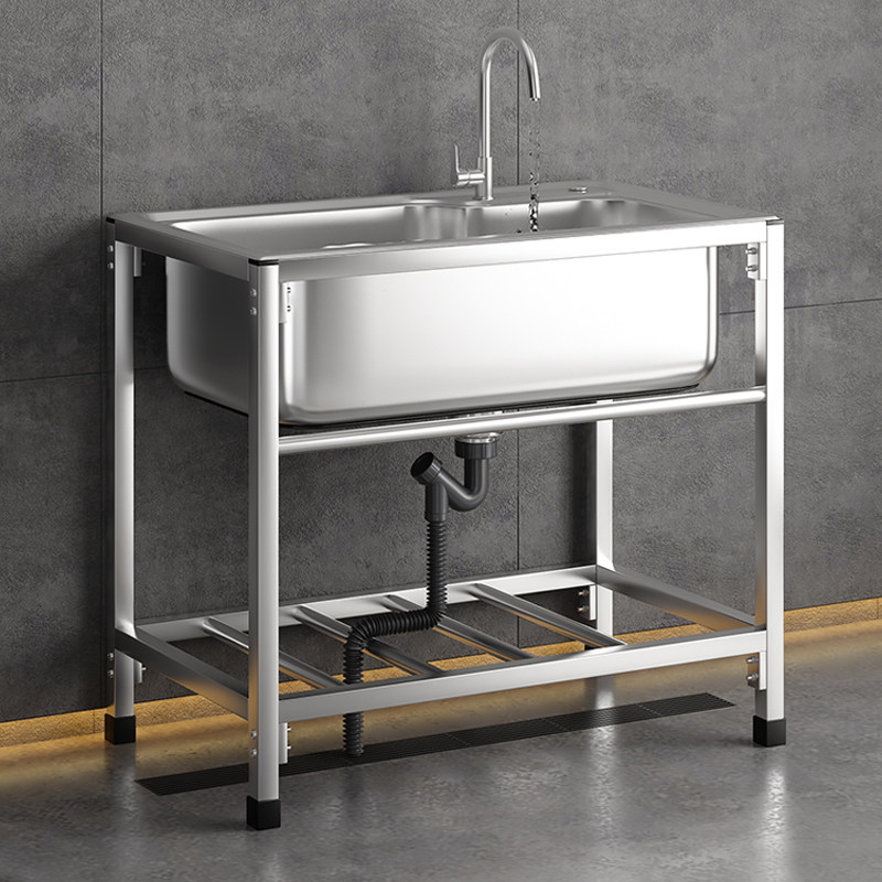 淘宝厨房J加厚简易304不锈钢水槽大单槽双槽带支架洗菜盆洗碗池洗碗槽