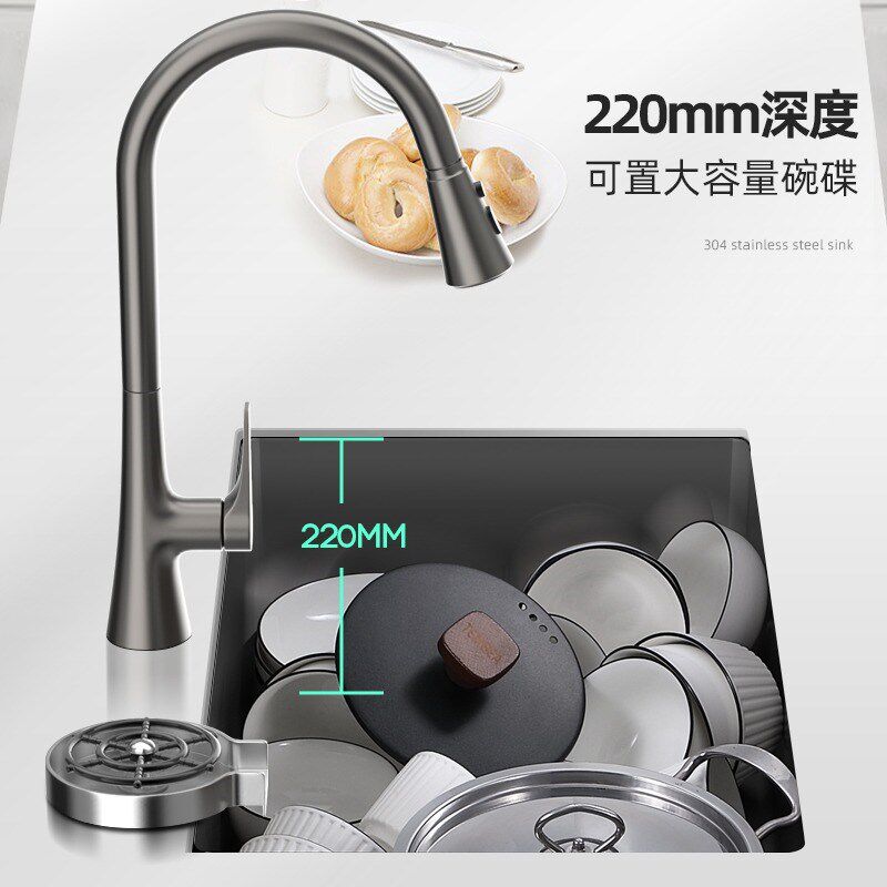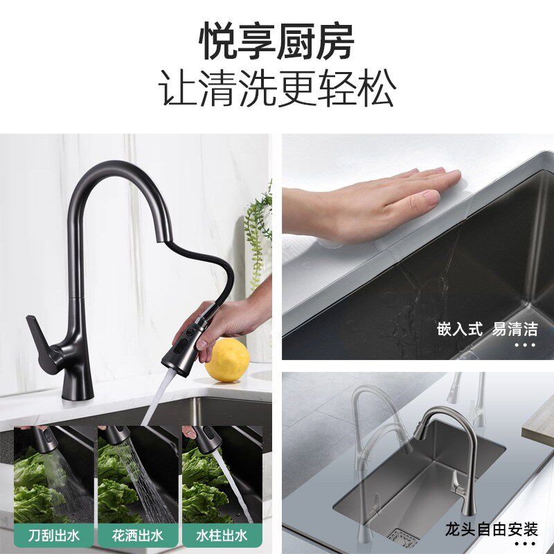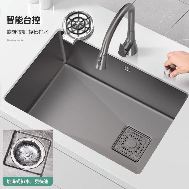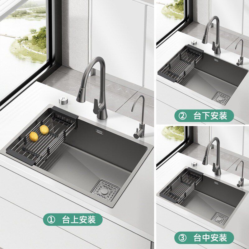 淘宝枪灰加厚水槽厨房大单槽304不锈钢嵌入式台下纳米洗菜盆洗手碗池