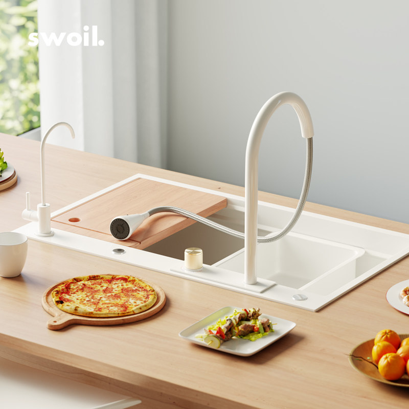 SWOIL日式洗菜盆是一款高品质的厨房水槽,采用优质304不锈钢材质打造,具备出色的防锈、耐腐蚀和易清洁特性。大单槽设计提供宽敞的使用空间,轻松容纳锅碗瓢盆,满足日常洗菜、淘米、洗碗等多种需求。独特的飞雨式下水系统,排水迅速且防堵塞,有效提升使用效率。简约日式风格外观,线条流畅,适配现代、北欧等多种厨房装修风格。加厚面板与静音设计,有效降低水流噪音,使用更安静舒适。SWOIL致力于为用户打造高效、耐用、美观的厨房体验,是提升厨房品质的优选之作。