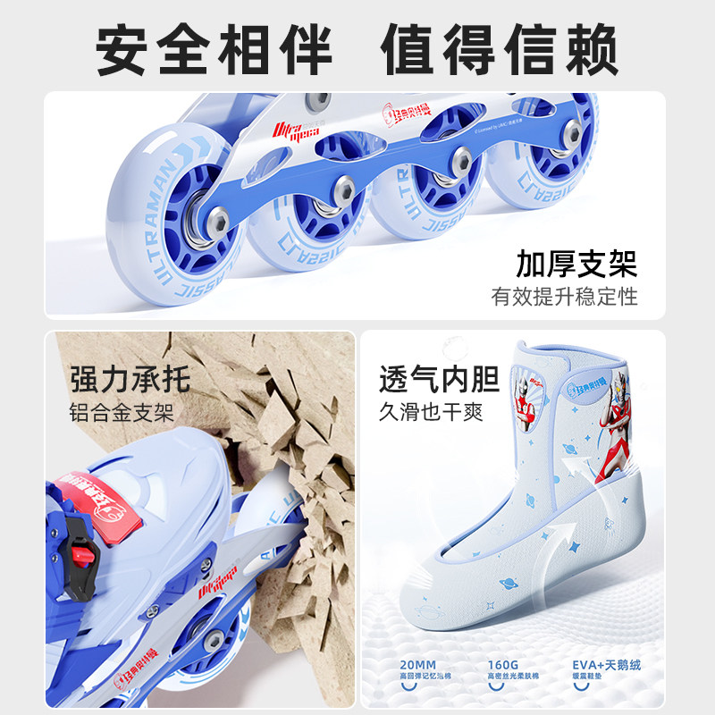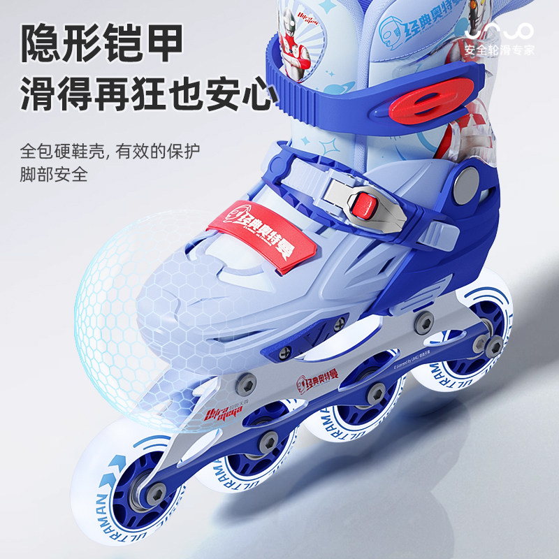 天猫经典奥特曼轮滑鞋男童溜冰鞋儿童初学者3岁6到12岁男孩旱冰可调节