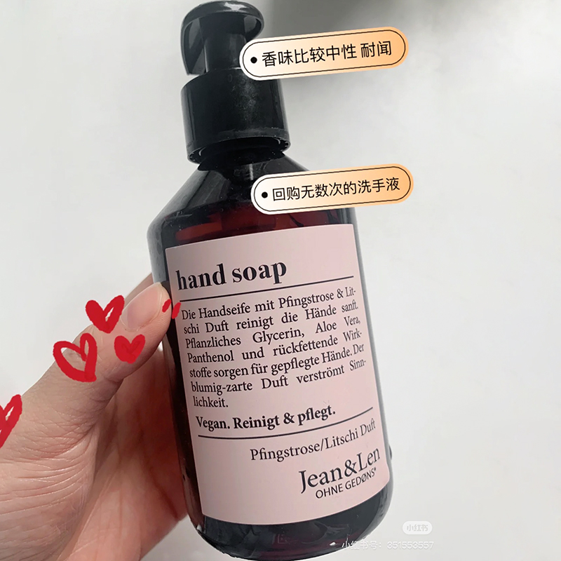 淘宝保税德国JEAN&LEN香薰洗手液生姜迷迭香牡丹荔枝留香清洁250ml