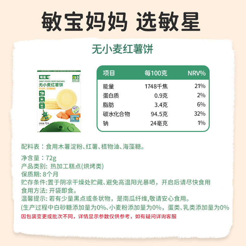 淘宝敏星无小麦薄脆风吹饼干藜麦饼无麸质蛋奶不添加白砂糖儿童小零食