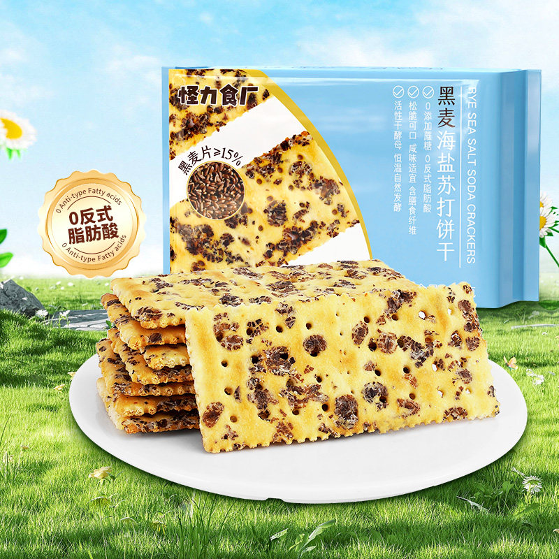 天猫怪力食厂黑麦海盐苏打饼干180g早代餐粗粮零食