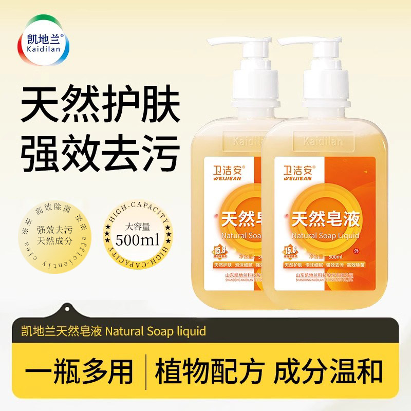 凯地兰医护天然皂液是一款专为家庭设计的抗菌抑菌清洁产品,采用天然植物成分,温和无刺激,适用于手部清洁及儿童内衣、家用织物的洗涤。其无磷配方环保安全,不伤衣物纤维,同时有效去除油污与日常污渍。特别添加抗菌成分,可长效抑制细菌滋生,守护家人健康。无论是日常洗手还是清洗贴身衣物,凯地兰都能提供深层洁净与安心防护。产品低泡易漂洗,节水省力,适合敏感肌肤及婴幼儿使用。凯地兰医护天然皂液,以天然之力,守护全家洁净生活,是家庭健康洗护的理想之选。