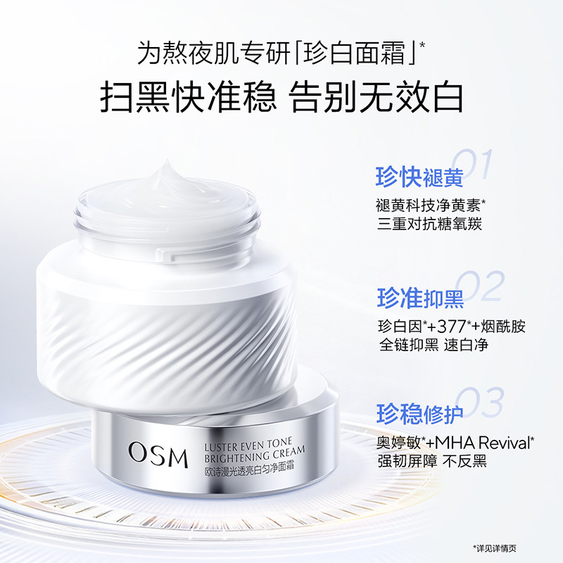 天猫欧诗漫珍白因面霜光透亮白匀净霜美白祛斑滋润保湿旗舰店官方正品