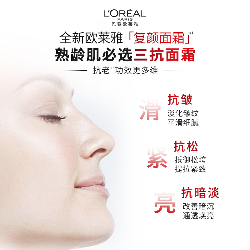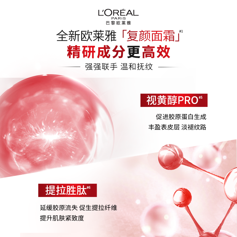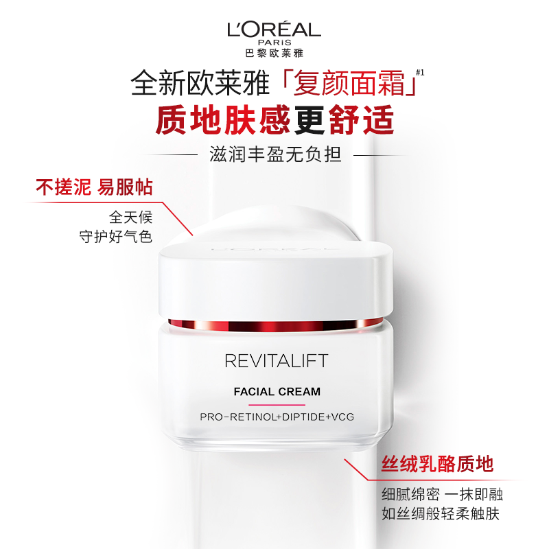 天猫欧莱雅大红罐复颜面霜视黄醇抗皱紧致日霜补水保湿淡化细纹护肤品