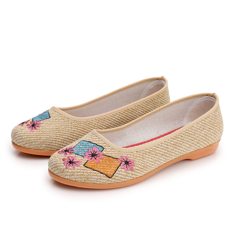 淘宝新款女鞋透气民族风妈妈鞋老北京布鞋女软底休闲一脚蹬古风绣花鞋