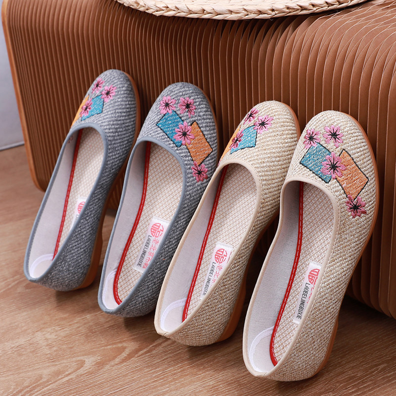 新款女鞋融合传统民族风与现代舒适理念,专为妈妈辈女性设计。采用优质透气面料,内里柔软亲肤,久穿不闷脚;软底轻盈缓震,行走轻松自在。一脚蹬设计方便穿脱,适合日常休闲、散步或居家穿着。鞋面融入精致古风绣花元素,搭配老北京布鞋经典版型,既显优雅气质,又充满东方韵味。无论是搭配旗袍、长裙还是休闲裤,都能展现独特魅力。这款透气民族风妈妈鞋,兼顾美观与实用,是送给母亲或长辈的贴心之选,让每一步都舒适从容,尽显温婉风采。