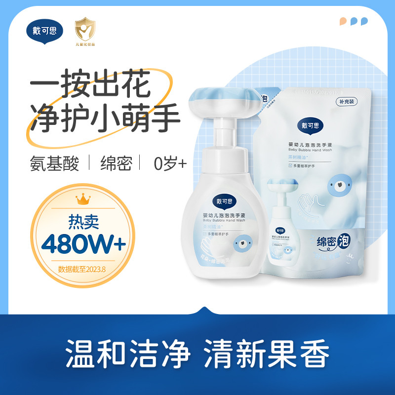 天猫戴可思婴儿宝宝花朵泡泡洗手液600ml装(1瓶+1袋)儿童泡沫洗手液