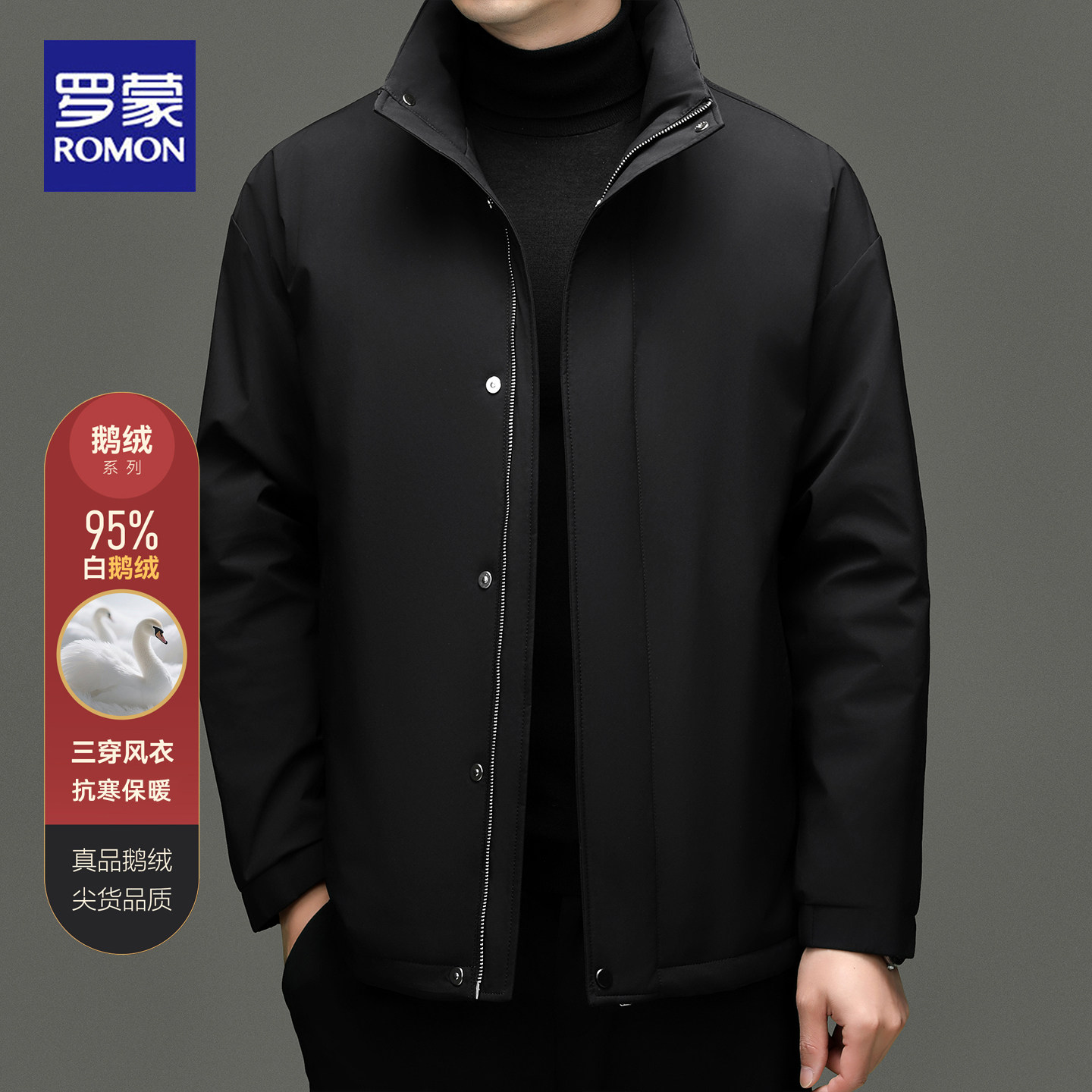 淘宝罗蒙商务风中长款羽绒服男90%白鹅绒可拆卸内胆加厚保暖风衣外套